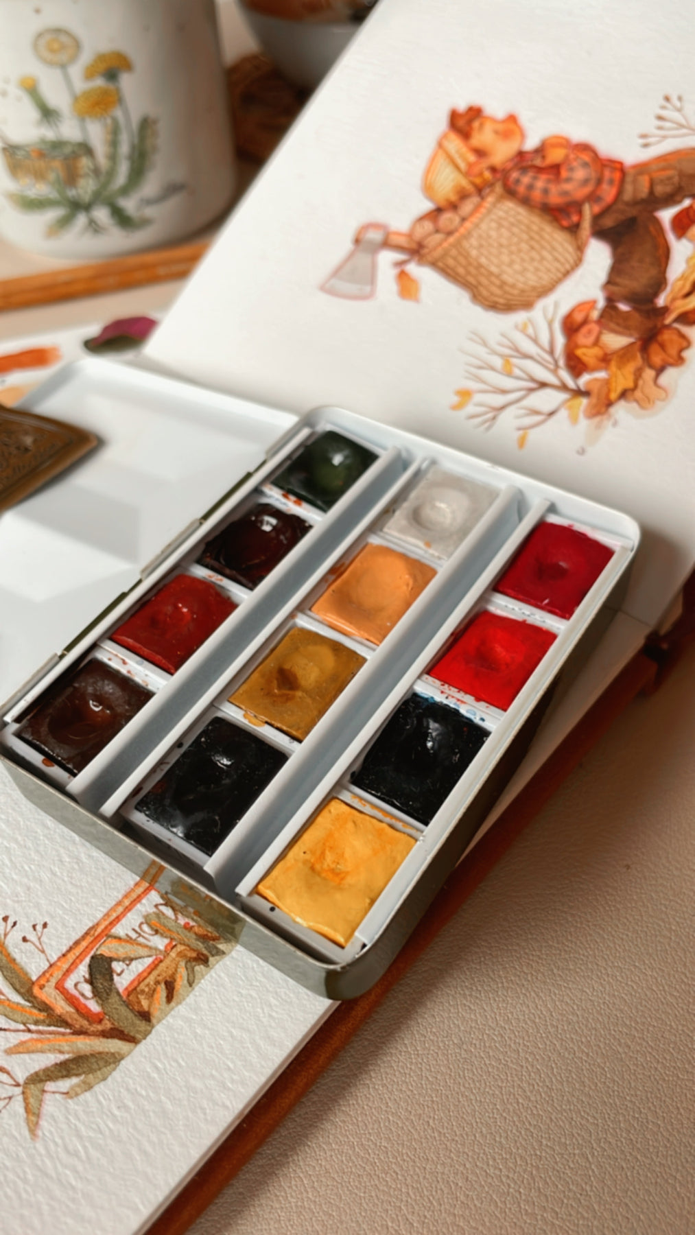 Dieser Aquarellkasten ist mehr als nur Farben in einem Kasten. Es erwarten dich Sue Rahels 12 Lieblingsfarben in Künstlerqualität, gebettet in einer ganz besonderen Metallbox, die in Europa mit viel Handarbeit gefertigt. Die Metall-Box erhält durch die besondere, zeitintensive Verarbeitung eine emailleartigen Haptik und hochwertige Optik - und liegt schwer in der Hand. Ein ganz besonderer Kasten.