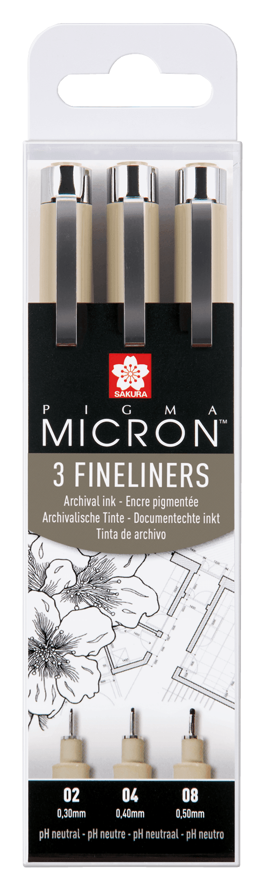 Dieses 3er-Set mit den Strichstärken 0,3 mm, 0,4 mm und 0,5 mm bietet die ideale kleine Auswahl an Finelinern zum Zeichnen und Illustrieren. Die permanenten und lichtechten Stifte eignen sich für verschiedenste Oberflächen und haben eine besonders feine aber auch stabile Spitze.