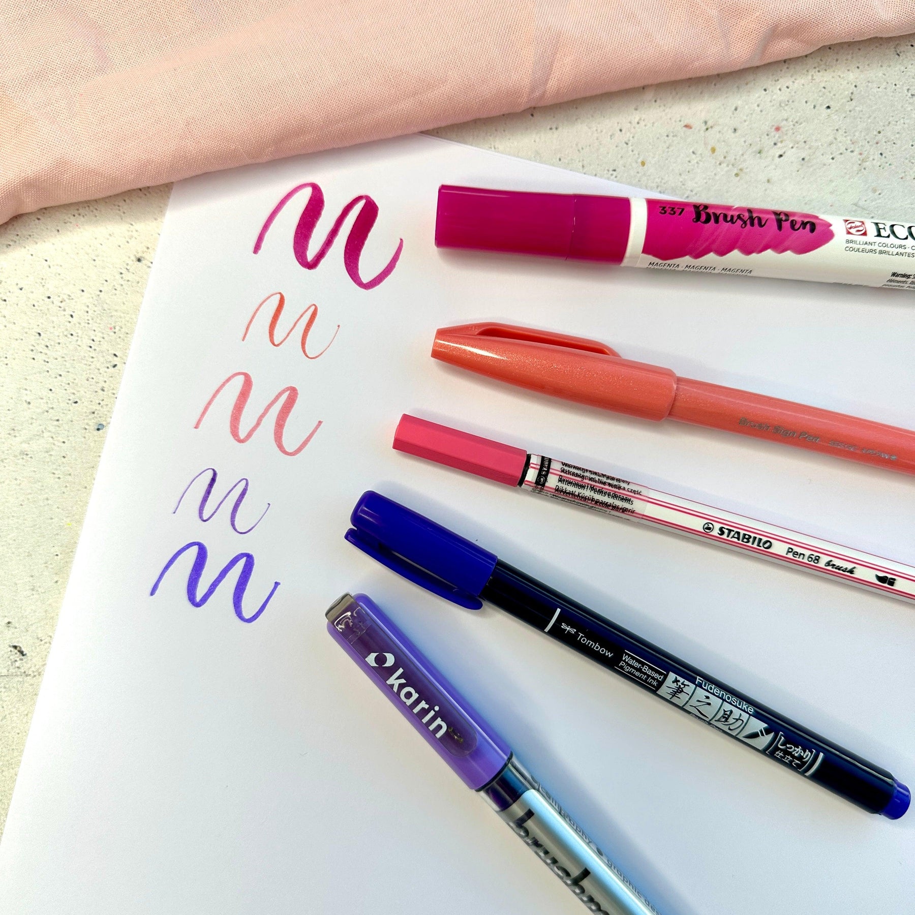 Rosa/Lilatöne - Karin (Pale Violet 247), Ecoline (Magenta 337), Stabilo (568/29), Pentel (Coral Orange), Fudenosuke (Purple)