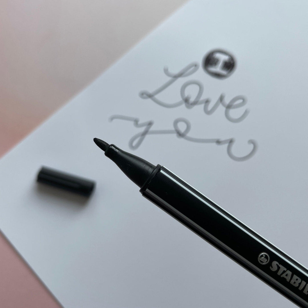 A classic and must-have for your handlettering projects. The robust nylon tip with a line width of 0.8mm is ideal for practicing faux calligraphy or for sketching. The pen is super in the hand and the tip stays wonderfully in shape even after frequent use.